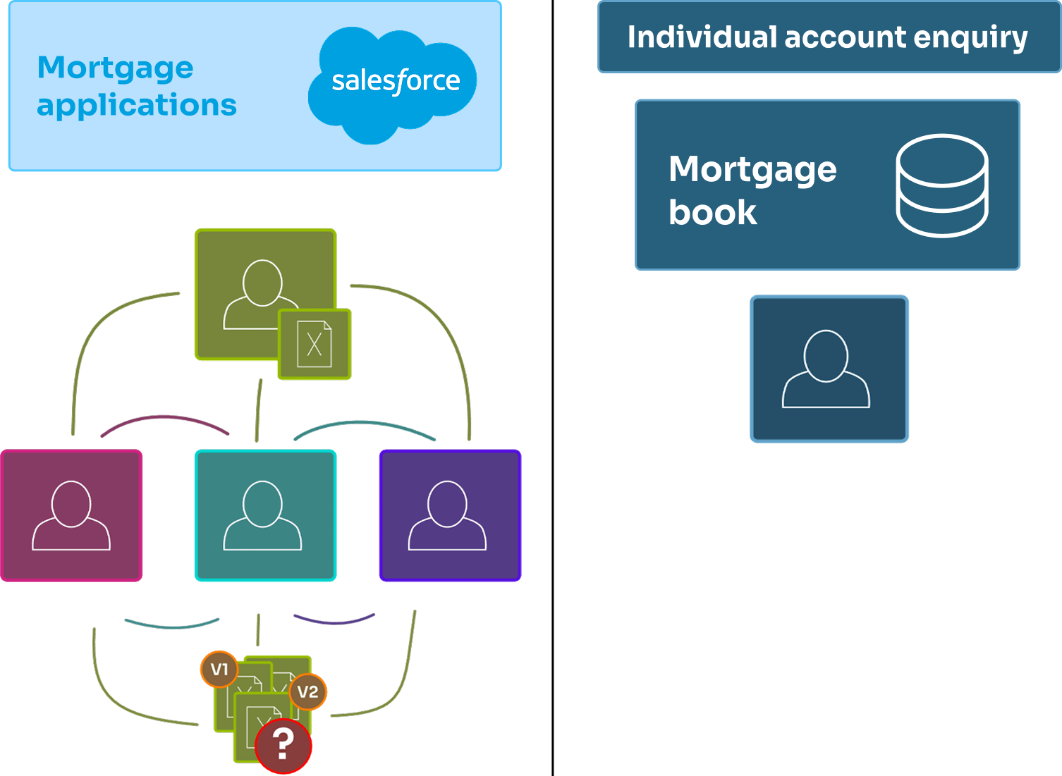 The bank needed to reconstruct the full mortgage journey and gain shared visibility over all in-progress applications. That meant:
